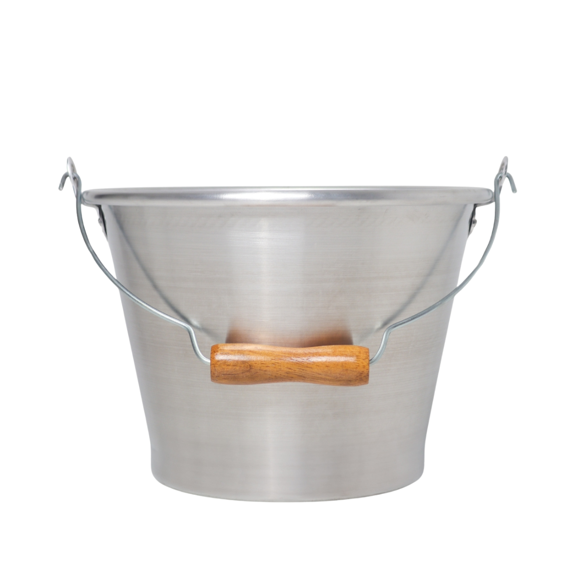 BALDE DE ALUMÍNIO Nº28 COM PEGADOR DE MADEIRA - CAPACIDADE DE 8 LITROS