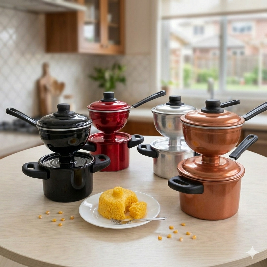 A Cuscuzeira Pequena individual, também conhecida como Cuscuzeira Bico de Moça, Cuscuzeira Nordestina e ainda como Cuscuz -eiro Marroquino, é um item que não pode faltar em sua cozinha! Ela é feita em alumínio de alta resistência e durabilidade