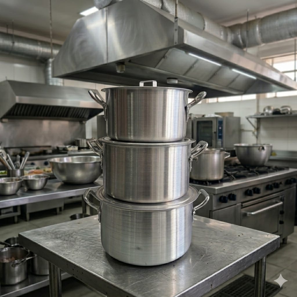 KIT COM 3 PANELAS CAÇAROLA HOTEL EM ALUMÍNIO POLIDO RESISTENTE